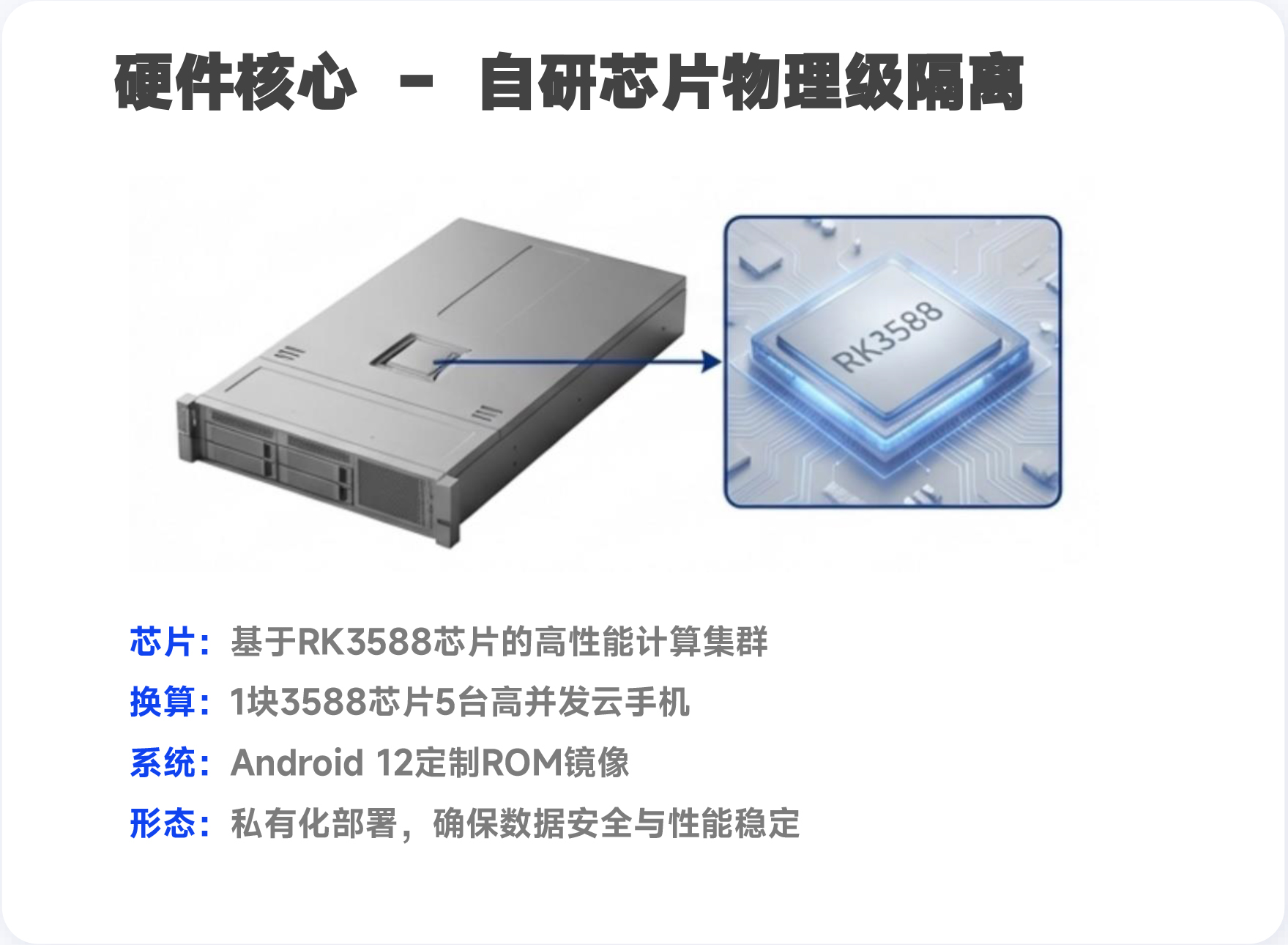 1块芯片支持5台高并发云手机,算力强劲,运行流畅。